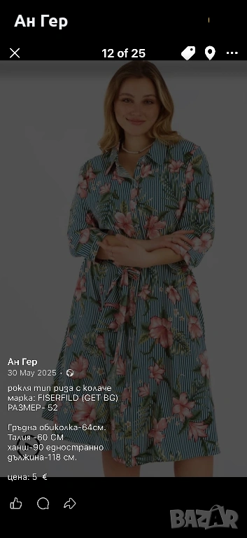 Рокля дамска 52 размер, снимка 1 - Рокли - 53796673 Рокля дамска 52 размер, снимка 2 - Рокли - 53796673 Рокля дамска 52 размер, снимка 3 - Рокли - 53796673 Рокля дамска 52 размер, снимка 4 - Рокли - 53796673 1/4