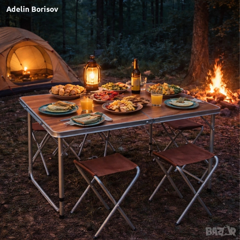 Комплект сгъваема къмпинг маса с 4 стола, Регулируема височина, Дизайн "куфар" → Обява 53796823
