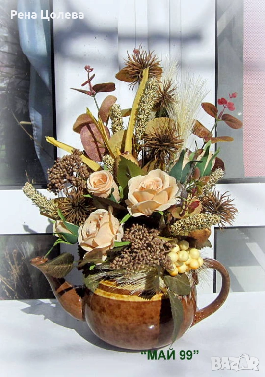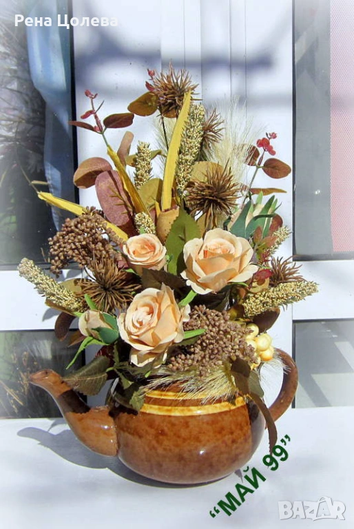 Рози в керамичен чайник → Обява 53796881