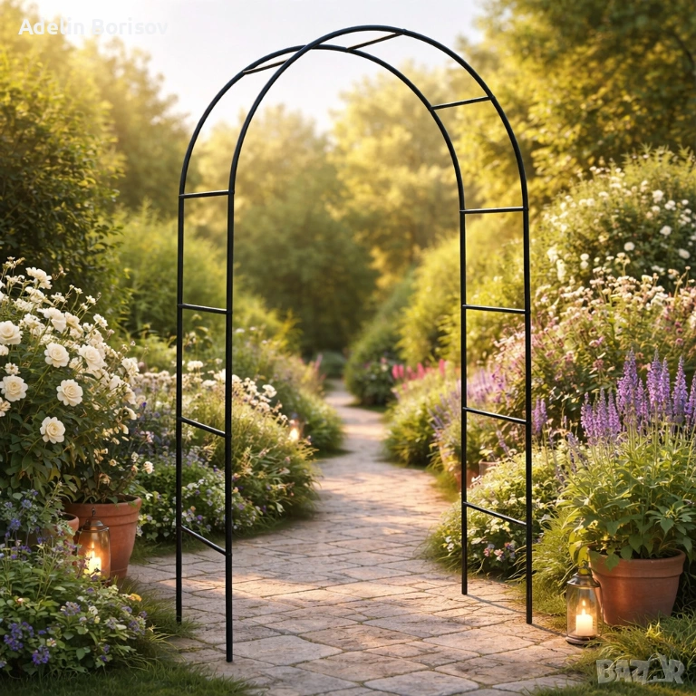 Декоративна градинска пергола тип арка – Опора за рози, лози и зеленчуци, устойчива на атмосферни ус