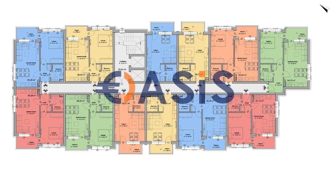 Обща площ: 63.04 кв.м