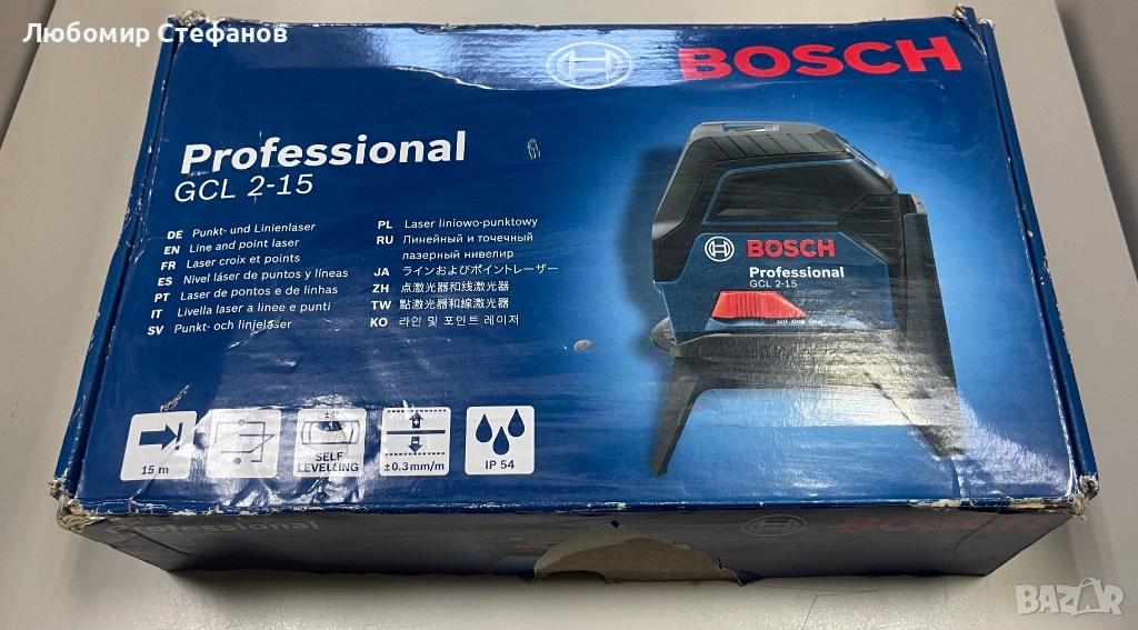 Линеен лазерен нивелир Bosch GCL 2-15 Professional, 15 м + магнитна стойка RM 1 → Обява 53797367