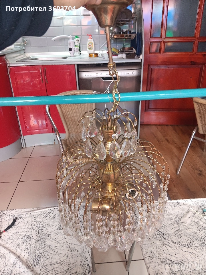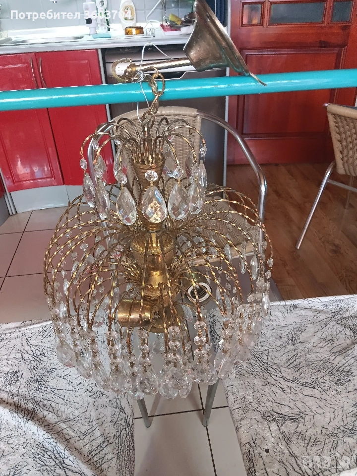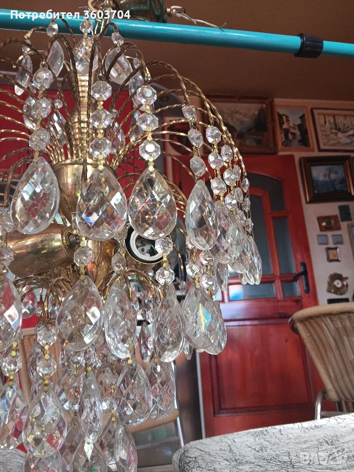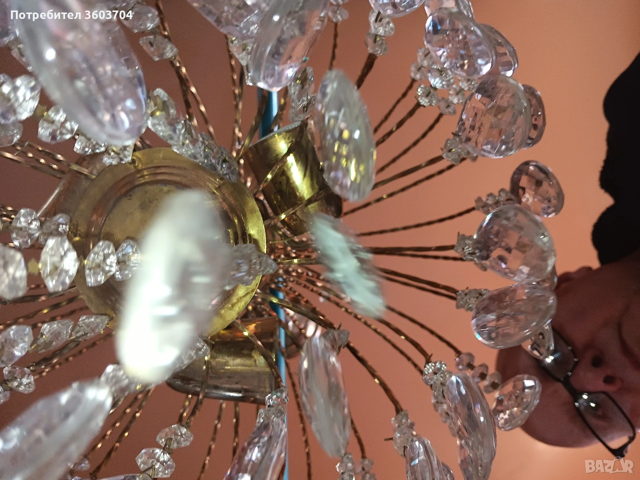 кристален полилей Франция изработен от позлатен месинг множество Кристали и три крушки от 50-те години на 19 век от липсва нито един Кристал всичко се е на мястото в отлично състояние високи 70 см и е широк 37 см уникален предмет за вашия хубав дом такъв Не можеш да намериш в днешните магазини камо ли и на такава цена Благодаря ви за вниманието Разгледайте и другите мои обяви може нещо друго да харесате