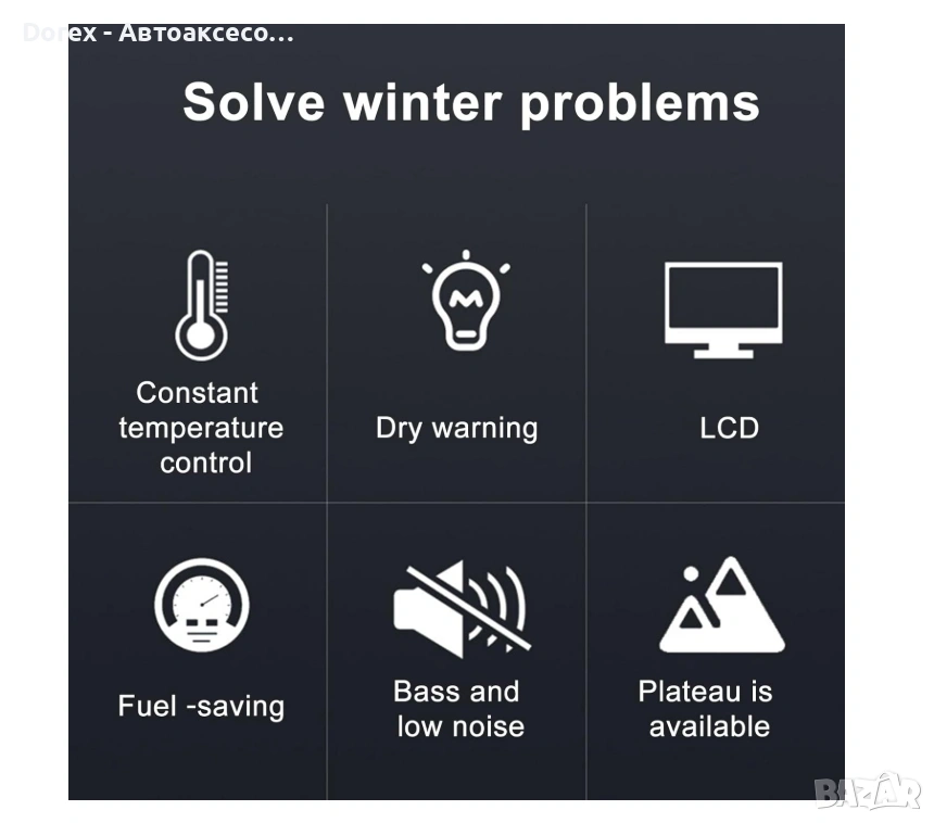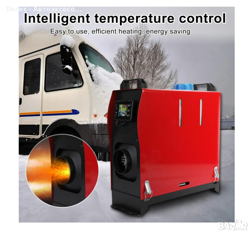 Разполага със самостоятелен дизелов нагревател за въздух (суха печка) с електронно управление.