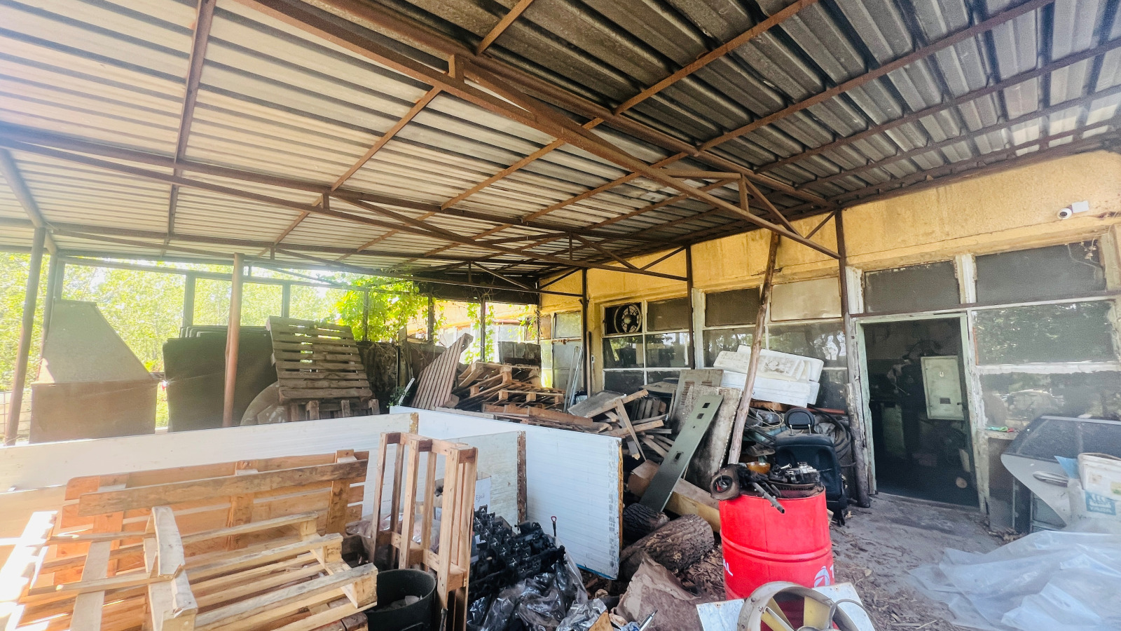 ?Халето е с бетонова подова настилка, което го прави идеално за различни видове дейности - от производствени процеси до складово съхранение.