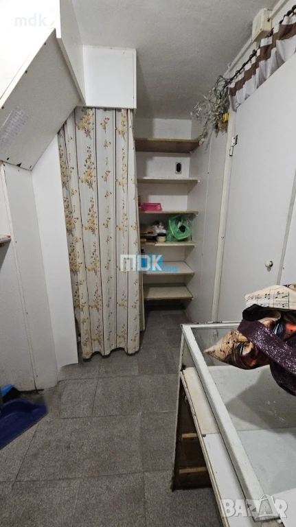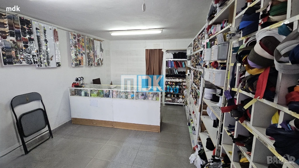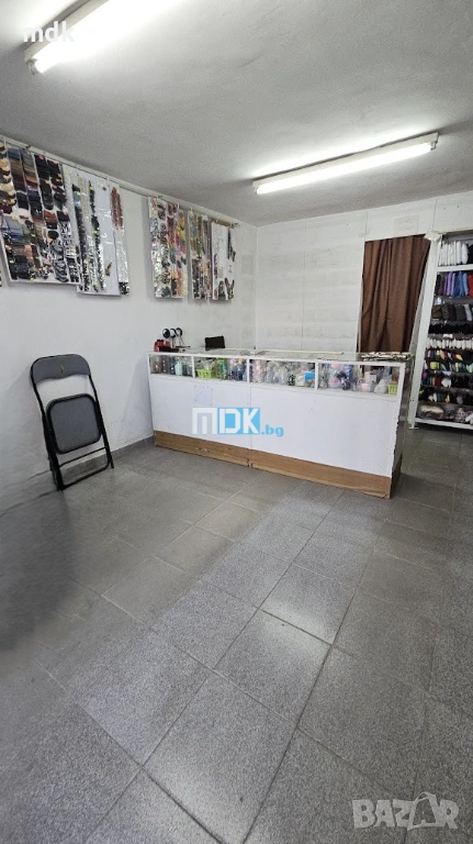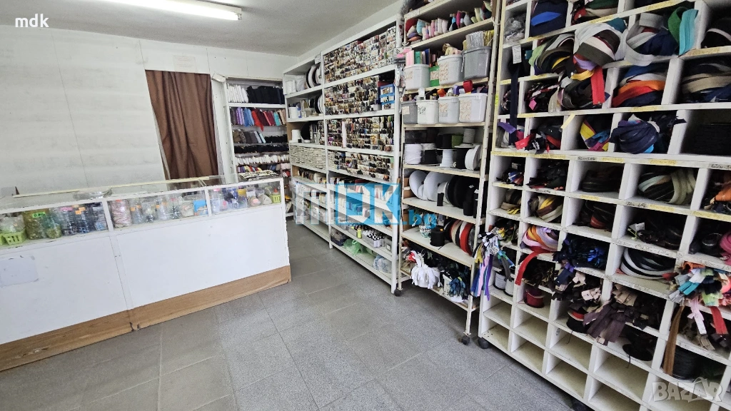 Магазинът е с площ от 22 кв.м. Разполага с търговска част, малък склад исанитарен възел. Има с хубава ПВЦ витрина с голяма рекламнаплощ. Стените са с латекс, подова настилка теракота, осветителни тела и рафтове, които могат да останат или да бъдат изнесени. Партиди за ток и вода. Подходящ е за различни дейности, тип промишлени стоки или офис. Отдава се дългосрочно.