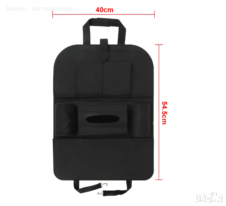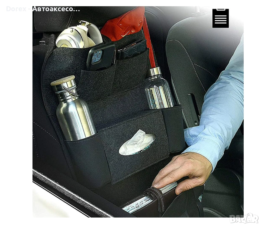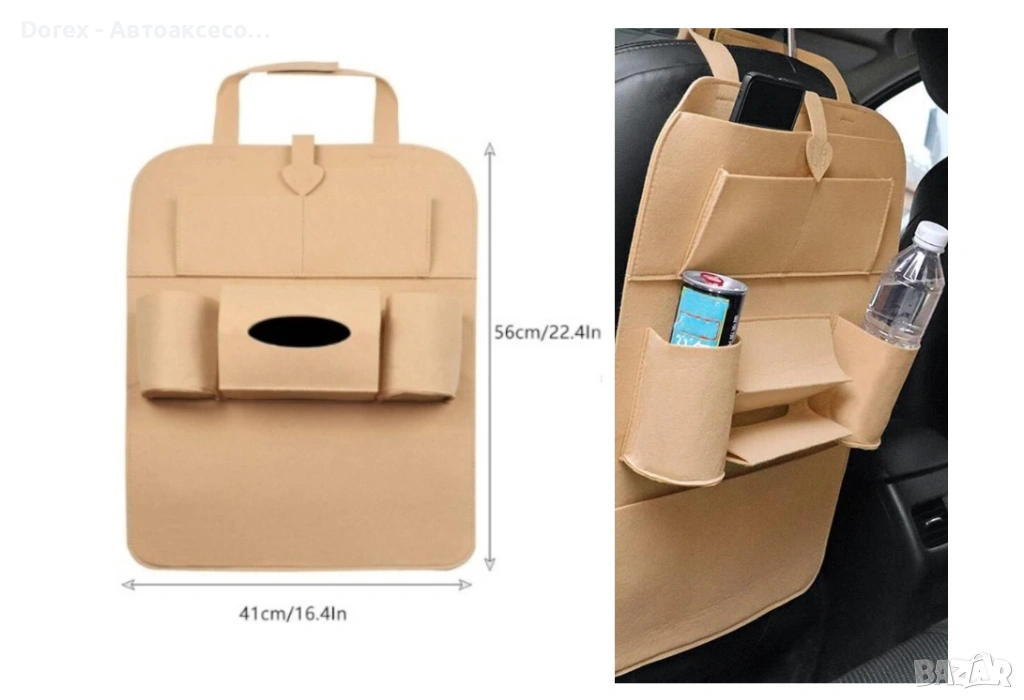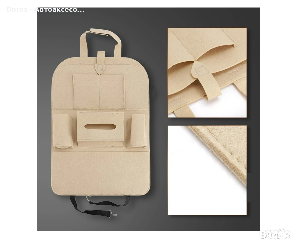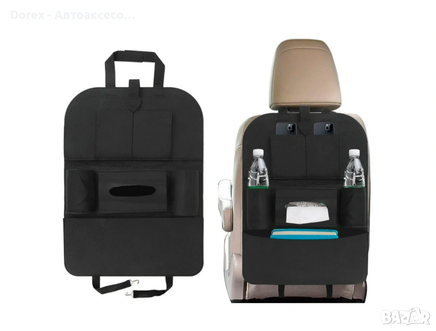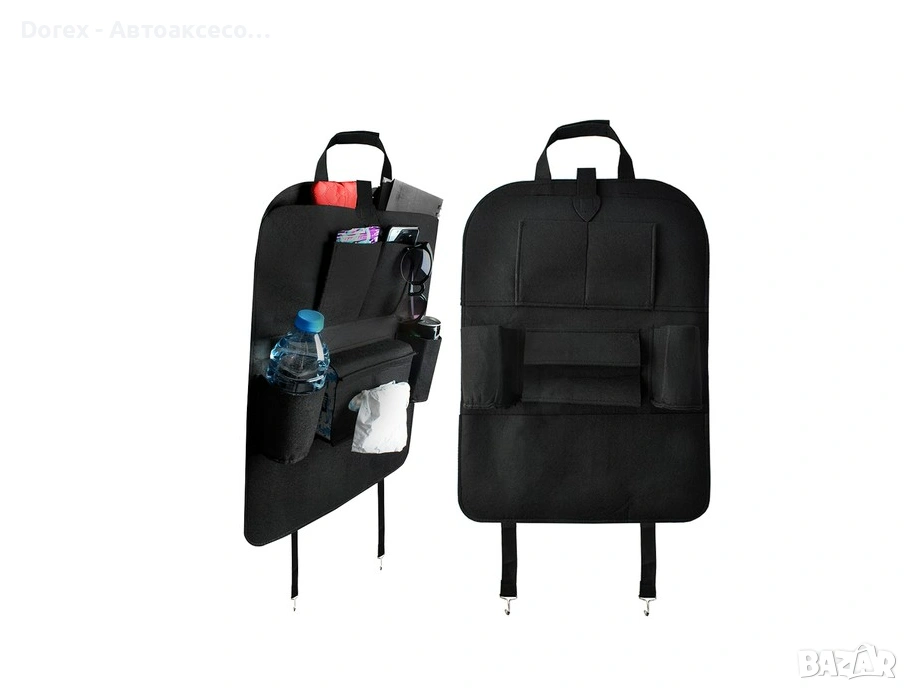 Универсалният органайзер за автомобилна седалка е практично решение за поддържане на ред и защита на интериора на вашия автомобил. Монтира се лесно на гърба на предната седалка и предпазва тапицерията от замърсявания, кал и следи от обувки, особено при пътуване с деца.