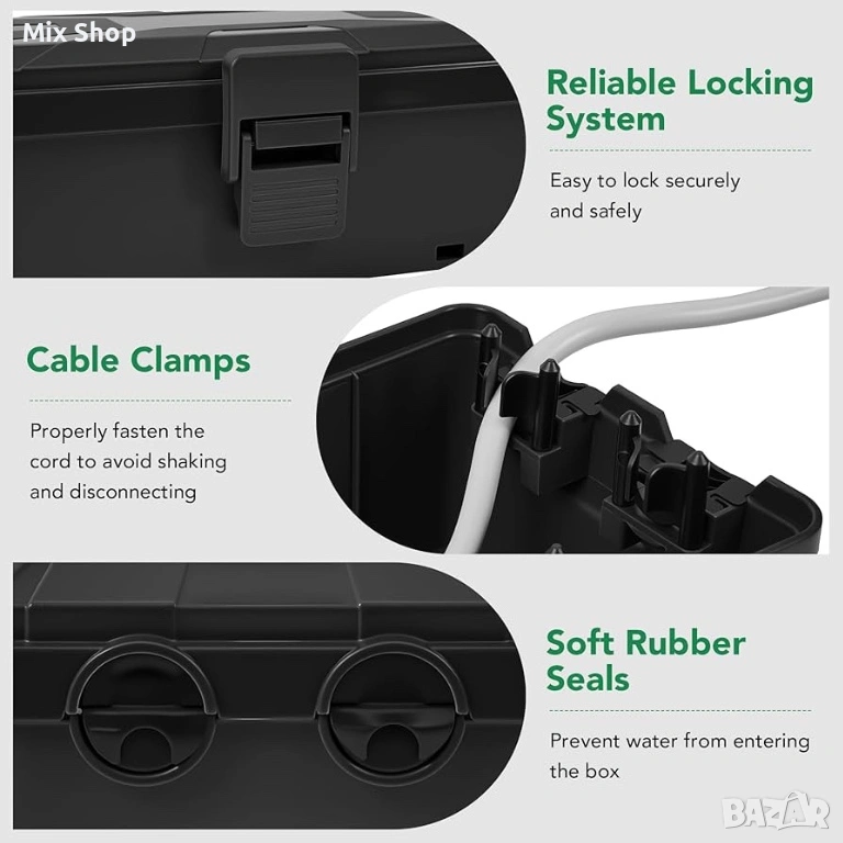 ЗАЩИТА НА УДЪЛЖИТЕЛНИЯ КАБЕЛ ЗА ВЪНШНА УПОТРЕБА: Изработен от здрав подсилен PP материал с водоустойчивост IP54, за да издържи на дъжд, сняг, вода, прах, мръсотия и други. Здравият капак на кабела осигурява сигурен канал за скриване и защита на електрическите кабели, проводници и проводници от повреди и износване.