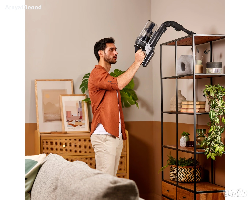 Благодарение на компактния и лек корпус с тегло на ръчния модул около 1.44 кг, прахосмукачката е лесна за управление и позволява удобно почистване на подове, мебели и високи повърхности без излишно натоварване на ръцете.