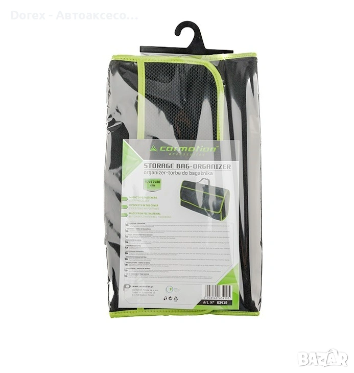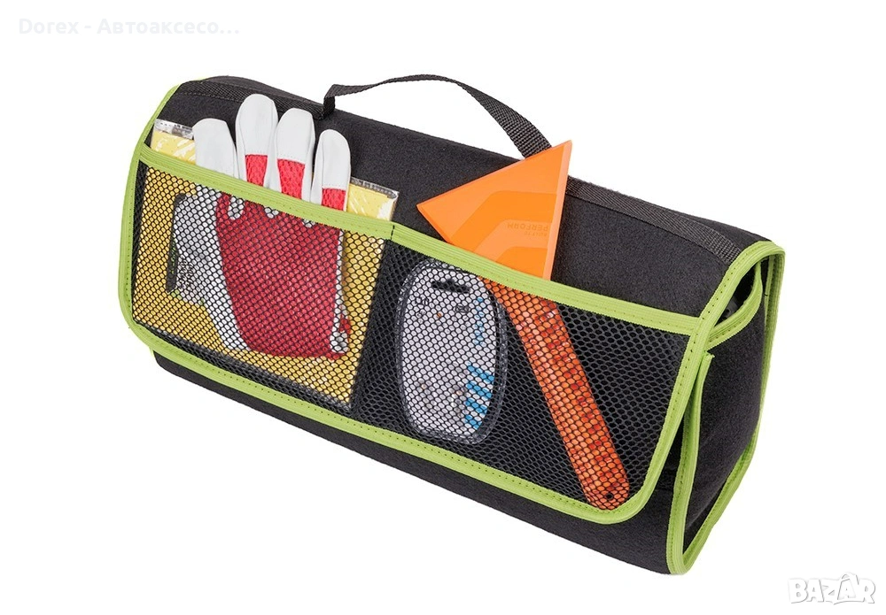 Практичната органайзер чанта за багажник Carmotion е идеално решение за поддържане на ред и организация в автомобила. Подходяща е за използване в леки автомобили, бусове и камиони, като осигурява удобно място за съхранение на различни предмети – инструменти, консумативи, аксесоари и други необходими вещи.
