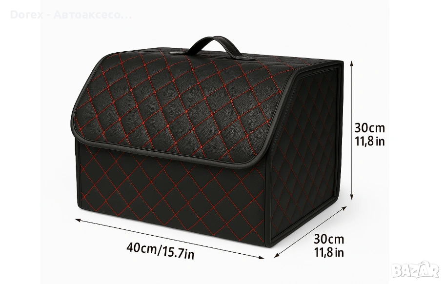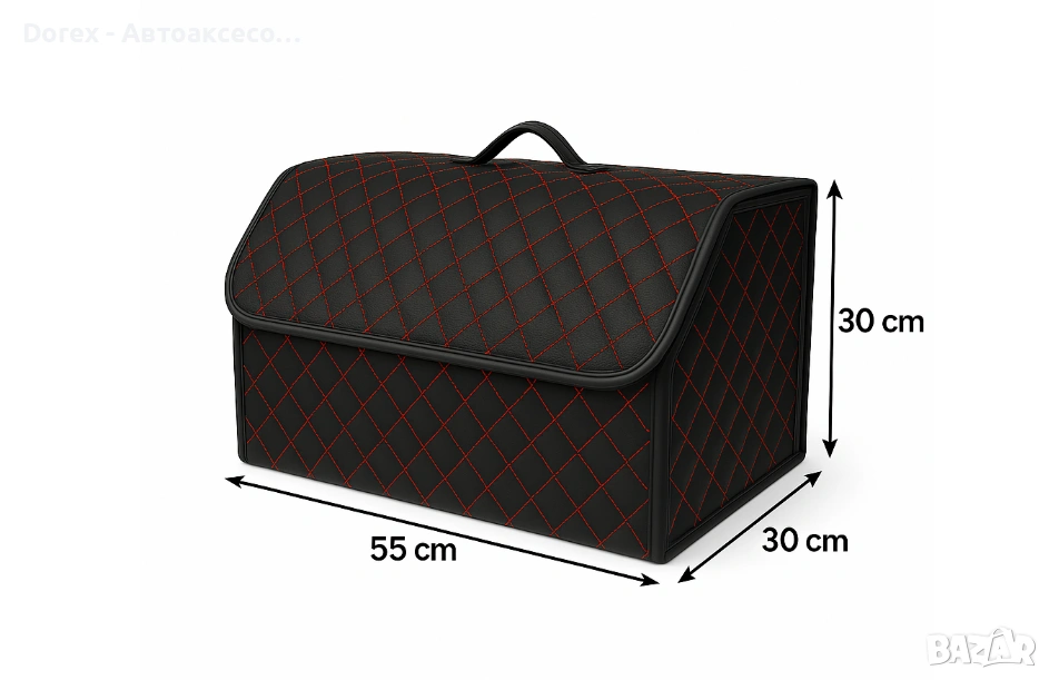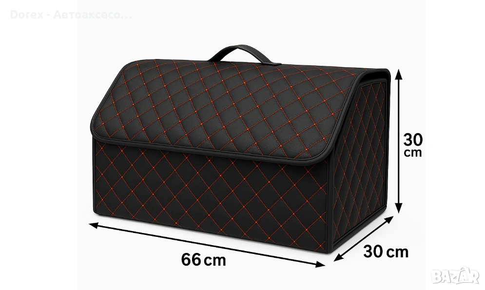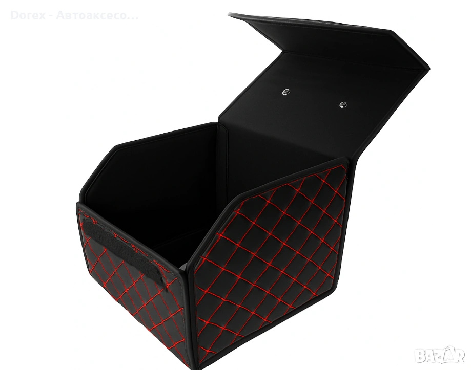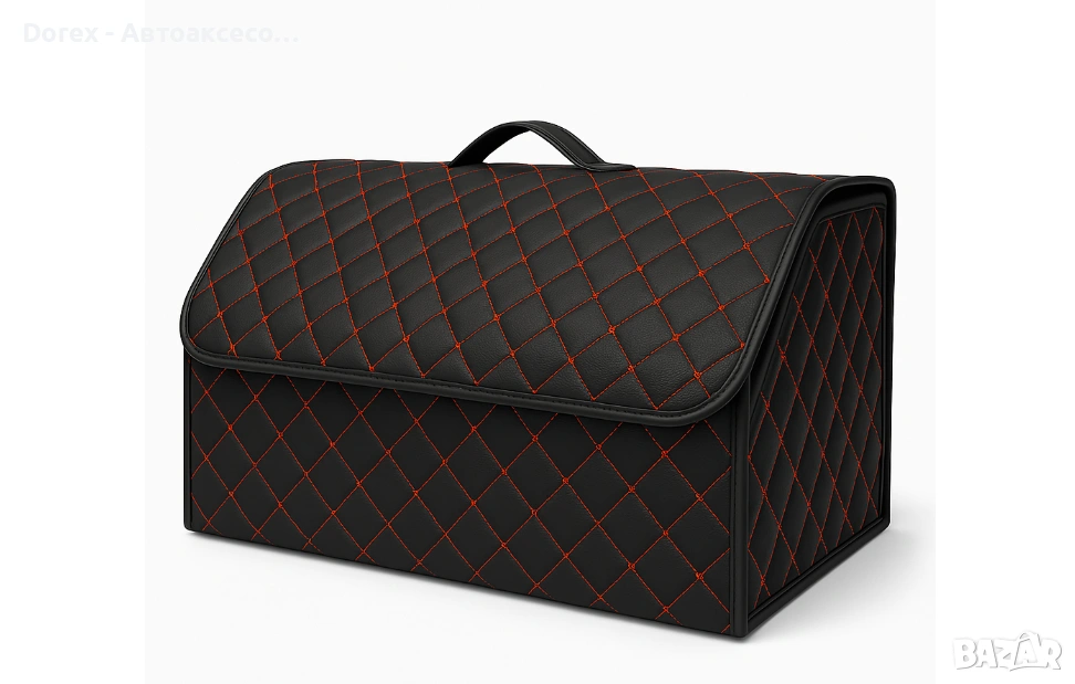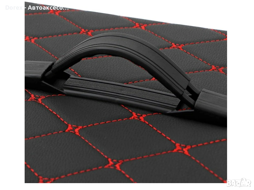 Със своя черен дизайн с червен шев, този органайзер е отличен избор за всеки, който търси практичен и стилен аксесоар за своя автомобил.