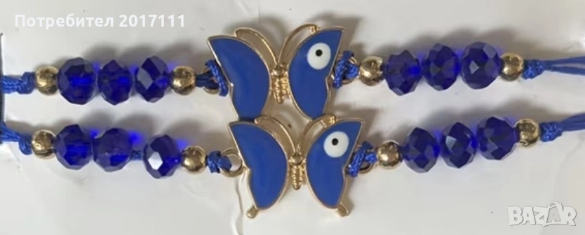 Гривна с пеперуда, синьо око и сини кристали – енергийна гривна за късмет, защита и стил, снимка 1 - Гривни - 53798455 Гривна с пеперуда, синьо око и сини кристали – енергийна гривна за късмет, защита и стил, снимка 2 - Гривни - 53798455 1/2