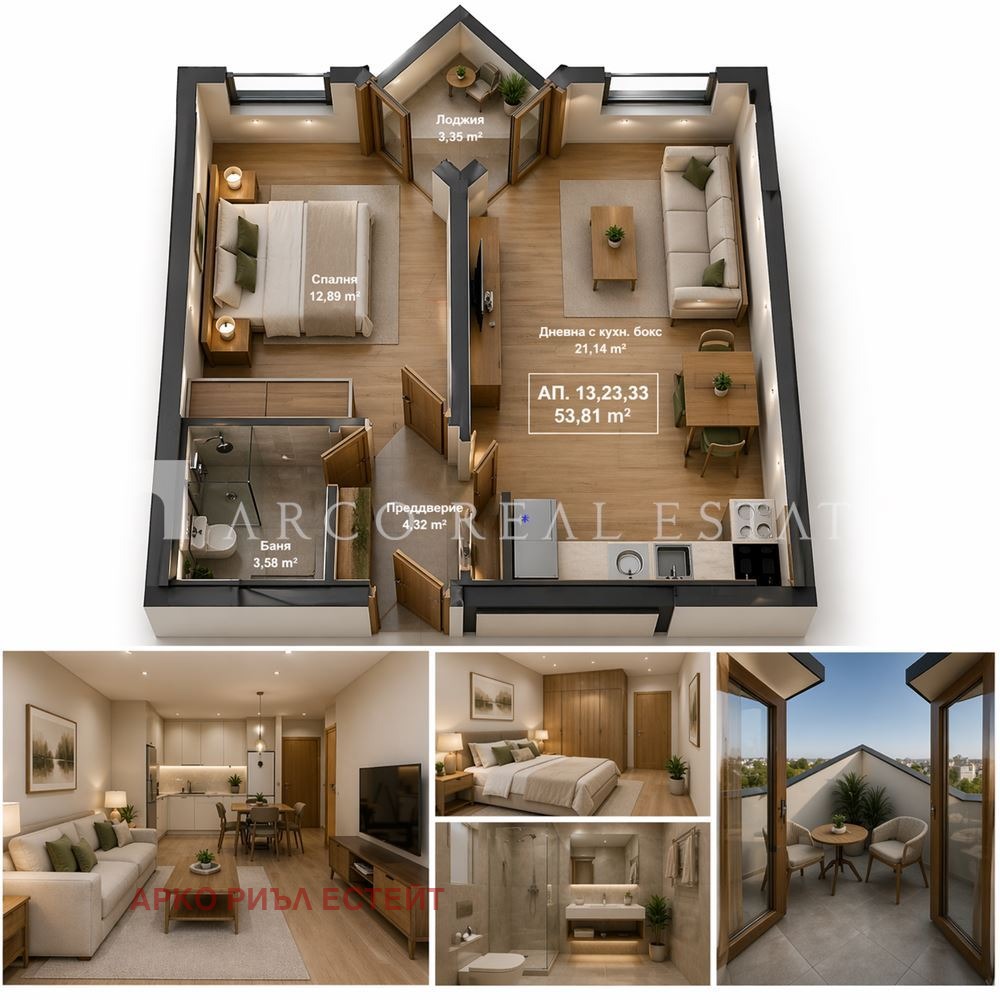 Площ- Общо-60,64кв.м , Чисто-53,81кв.м, Общи части- 6.78 m2