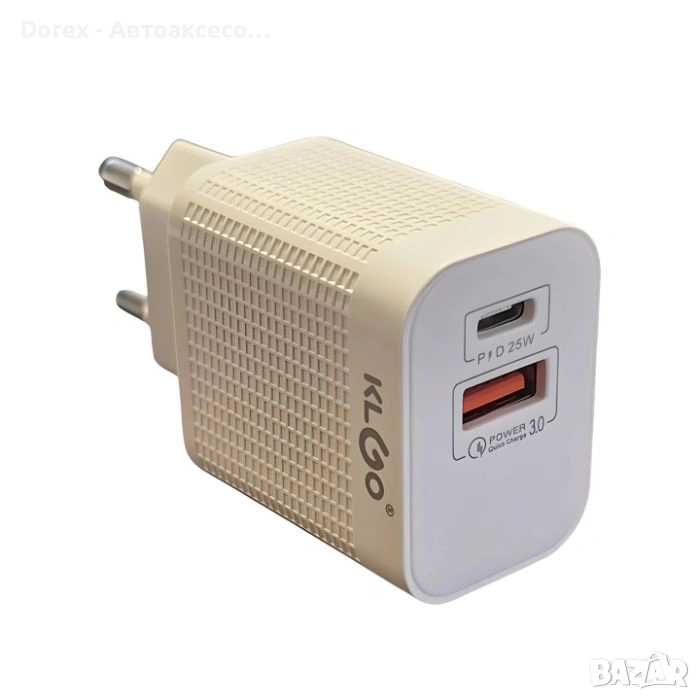 адаптер за зареждане с мощност 25W, предназначен за дома, офиса или пътувания. Позволява бързо и безопасно зареждане на смартфони, таблети и други електронни устройства.