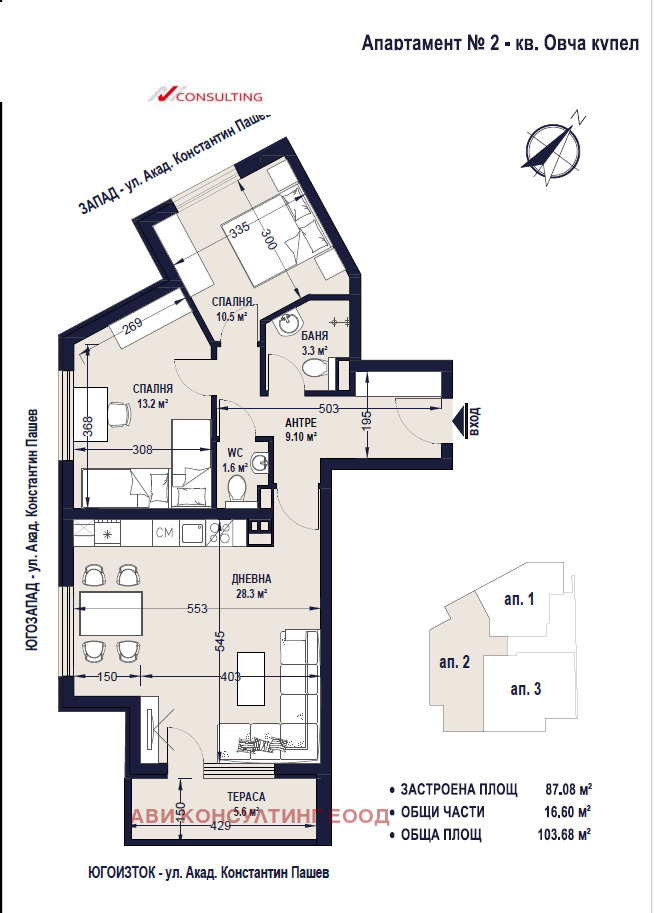 АВИ КОНСУЛТИНГ продава екслузивно слънчев тристаен апартамент в Овча купел 2, близо до НБУ и метростанции Мизия и Овча купел 2, с Акт 16 от 2025 г. Инвеститорът/строителят е с дългогодишна история, богат опит и богато портфолио.