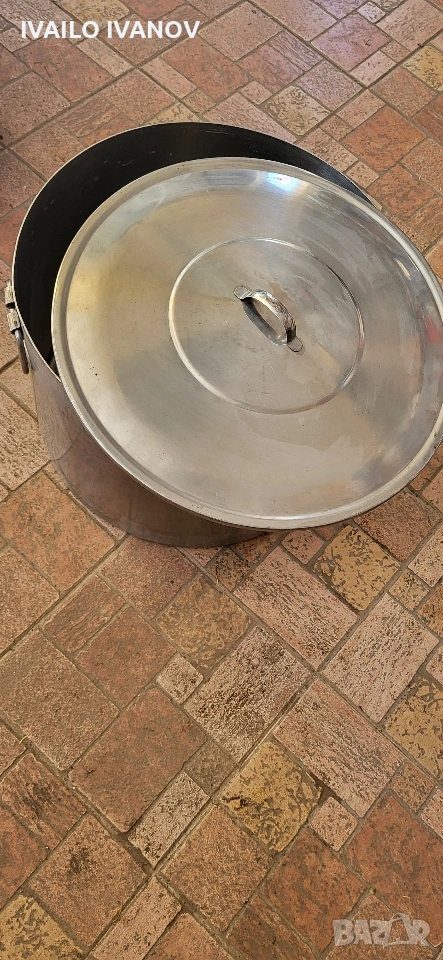 Казан на Хром Силистра 60литра с капак дебела неръждавеика 2мм алпака истински тежък и масивен на практика вечен от соца в отлично състояние
