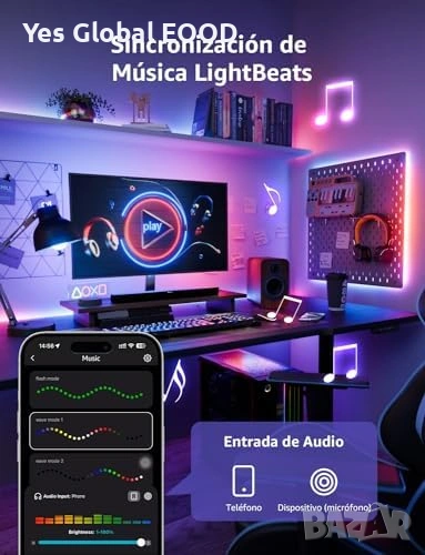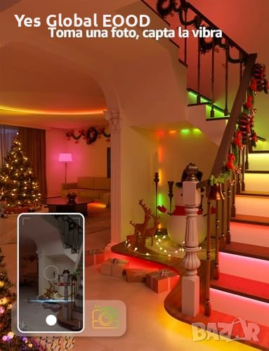 Лентата предлага Music Sync функция, която синхронизира светлината с музиката, както и AI осветителен асистент за създаване на персонализирани светлинни ефекти. Подходяща за спалня, парти, гейминг стая или декоративно осветление.