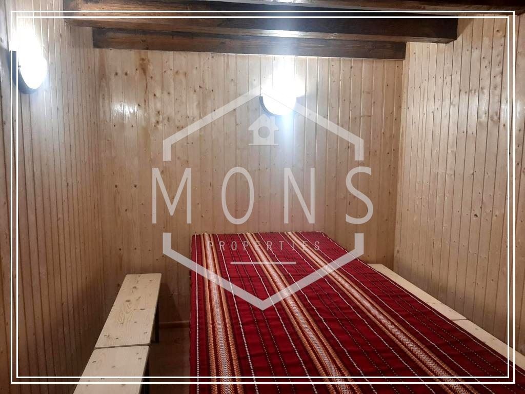 -Първи етаж(сутерен): три помещения съединени в едно, камина, санитарен възел.