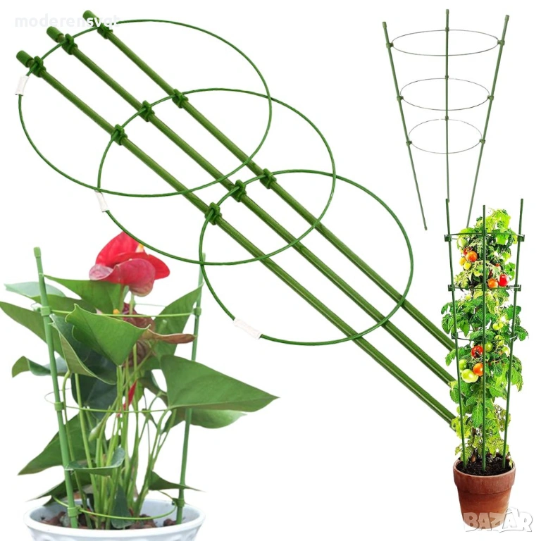 Те улесняват поддържането на реда в градината, особено за увивни растения или такива с надвиснали стъбла. Те помагат за насочване на растежа на растението в правилната посока и го предпазват от заплитане.
