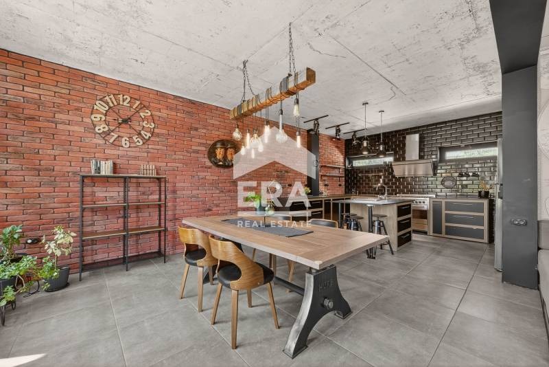 ЕКСКЛУЗИВНО! ДВУЕТАЖНА, ОБЗАВЕДЕНА В ИНДУСТРИАЛЕН СТИЛ КЪЩА, С ГОЛЯМ ДВОР И БАСЕЙН, НА 600 М ОТ БУЛ. ТРЕТИ МАРТ. ЕРА Варна Тренд предлага за продажба двуетажна къща с РЗП 272 кв.м и следното разпределение: