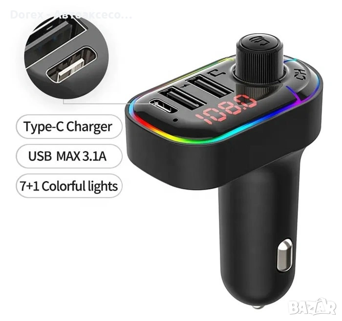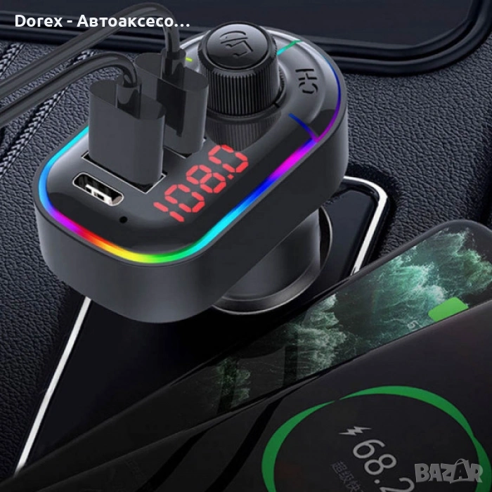 Практичен автомобилен FM трансмитер, който позволява безжично слушане на музика и провеждане на разговори директно през аудиосистемата на автомобила. Устройството се свързва с телефона чрез Bluetooth и предава звука към радиото чрез FM честота.