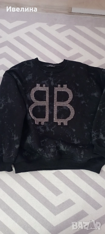 Нова дамска блуза, ватирана, свободен спортен стил, надписът е от бели камъчета