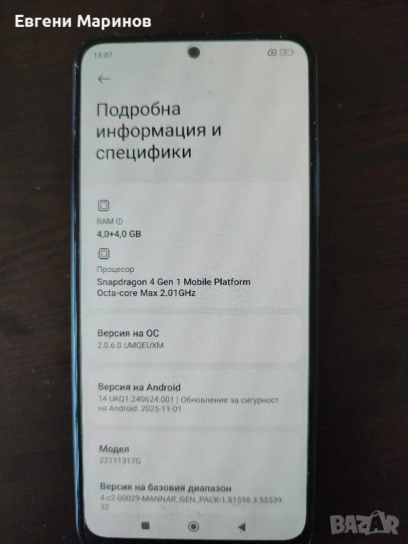 Redmi Note 12 с 5G поддръжка и 128GB вградена памет. Телефона няма драскотини и работи безупречно –
