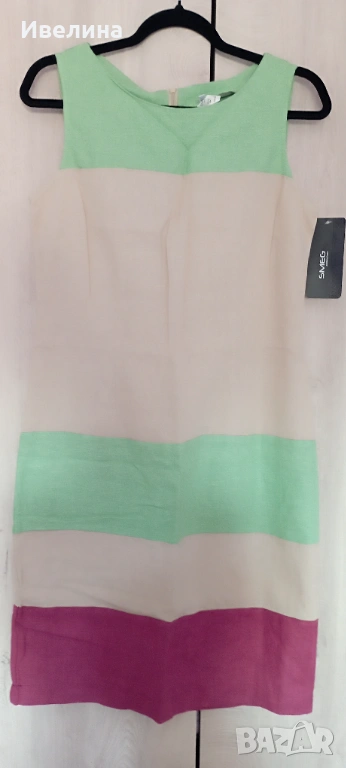 Нова дамска рокля, с етикет, лен 100%, три цвята, на гърба с цип, стои изключително елегантно, размер 40, ГО 92 см