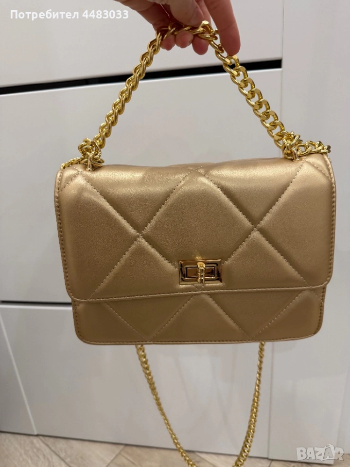 Златиста чанта през рамо → Обява 53800991