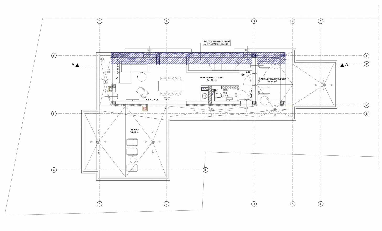 Трети етаж панорамно студио с просторни тераси, подходящо за зона за отдих, хоби пространство или домашен офис, с открити гледки към града и Витоша.