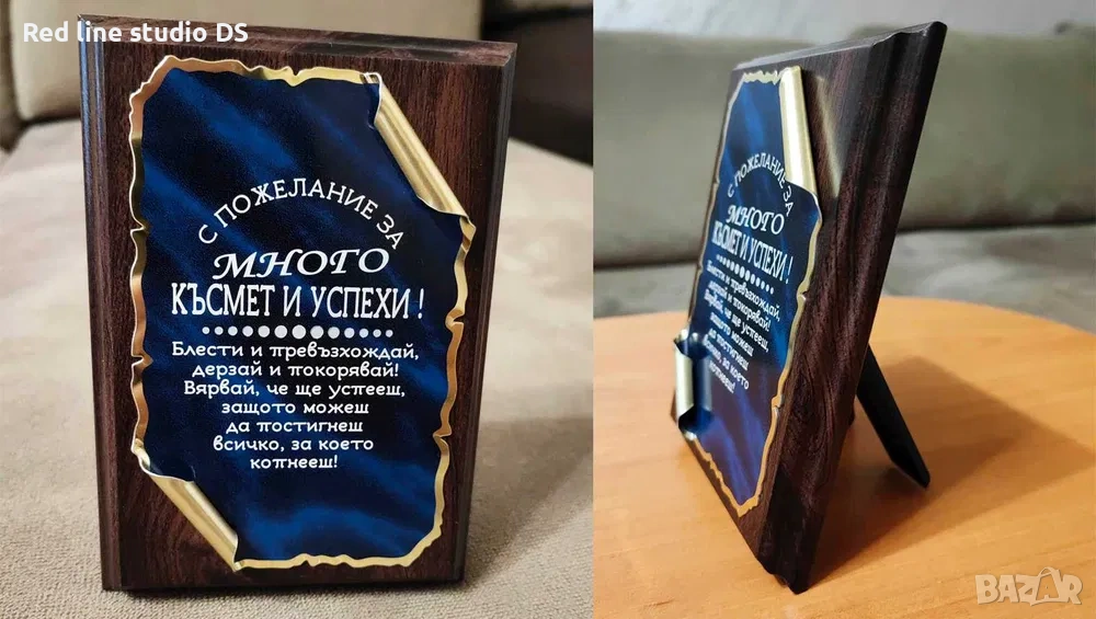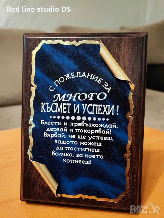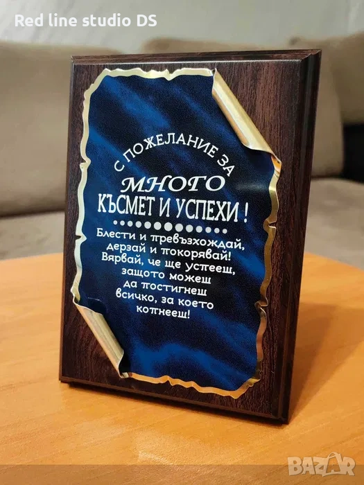 Гравиран дървен плакет с Ваш надпис 10х15 см. → Обява 53801011