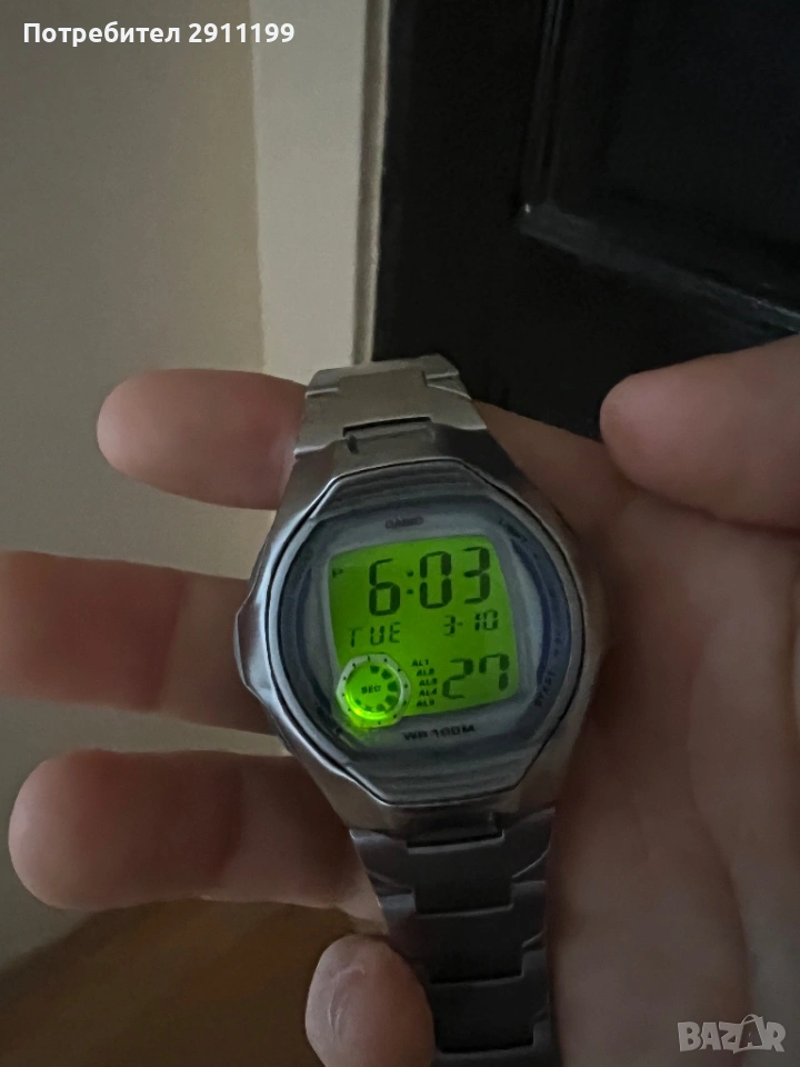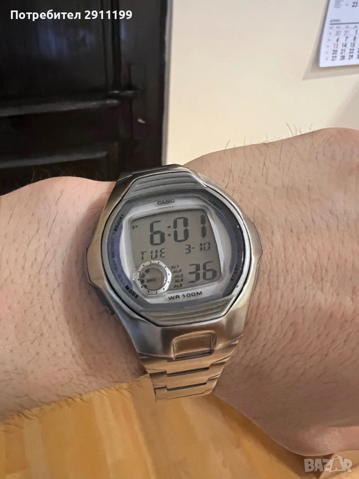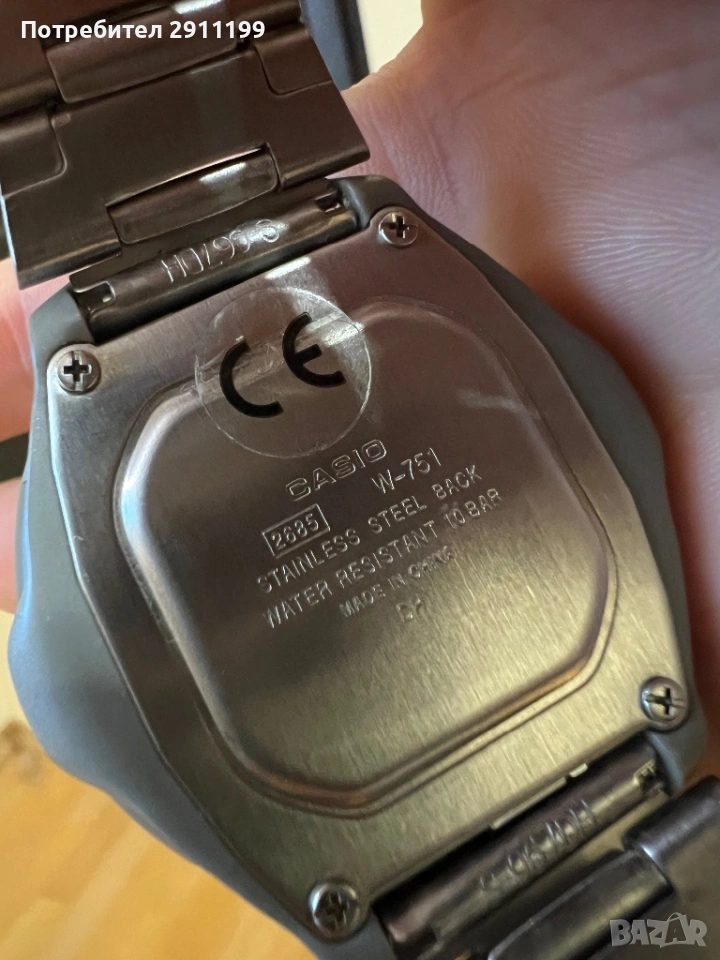 Casio W-751 / 2685 / Water Resistant 10Bar Отлично работещ електронен / дигитален часовник. Корпуса е 4,2 х 4,5 см., каишката е широка 1,8 см. Неизползван, без следи от ползване.