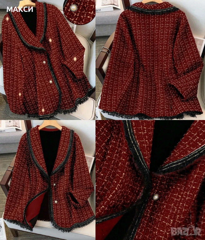 Разкошно неразтегливо макси елегантно дълго сако с красиви копчета перли и златиста нишка в червено → Обява 53801104
