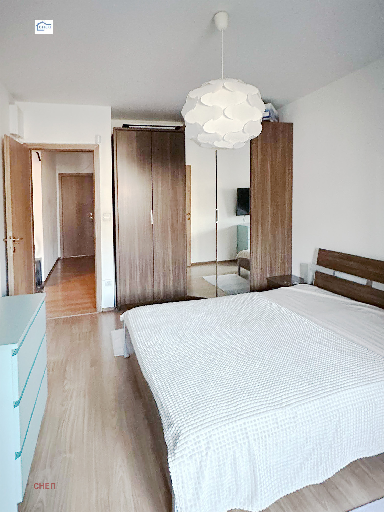 Обзавеждане: дневна с кухненски бокс всички необходими електроуреди /ел.фурна и котлони, хладилник, пералня/, бар-плот, разтегателен диван, 2 бар-стола; спалня голям гардероб и легло тип-спалня, шкаф- ракла, телевизор; втора спалня /детска/ детско легло, разтегателен фотьойл, стол, 2-крилен гардероб и етажерки.
