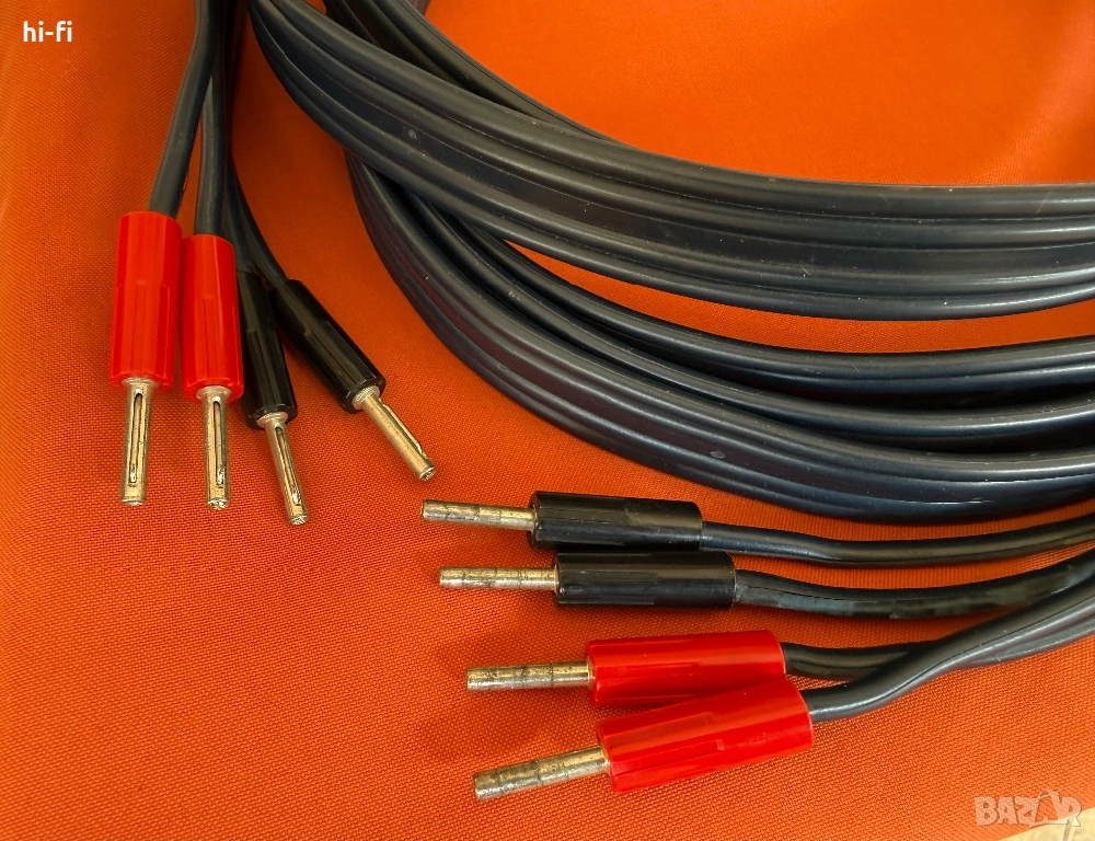 Кабелите са запазени, с посока на сигнала, оборудвани са с 12 бр. оригинални банан щекери. Минималната разлика в двете дължини не влияе по никакъв начин на представянето тези качествени винтидж кабели.