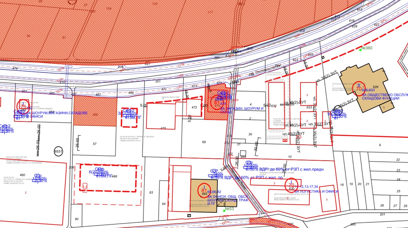 БИЗНЕС ТЕРЕН 8 740 м² С ЛИЦЕ 102 М НА ОКОЛОВРЪСТНО ШОСЕ ДО Порше София Изток