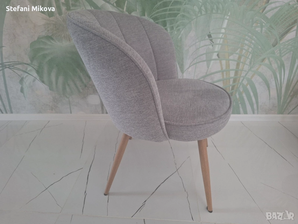 Две удобни и стилни тапицирани кресла в отлично състояние. Подходящи за всекидневна или трапезария. Изработени от висококачествени материали, с дървени крака и елегантен дизайн.