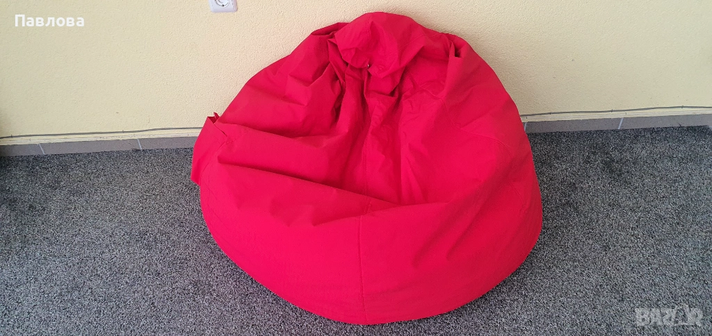 Удобен и практичен пуф в червен цвят. Размер XL. Форма - круша. Водонепромокаема дамаска, с джоб за телефон или дистанционно отстрани. Удобен и практичен както за сядане, така и за лежане, подходящ за дома или детски център/ занималня/ градина. Може да се ползва от деца и възрастни. Външната калъфка се сваля и се пере. Възможно е лично предаване за гр. Пловдив, жк Христо Смирненски.