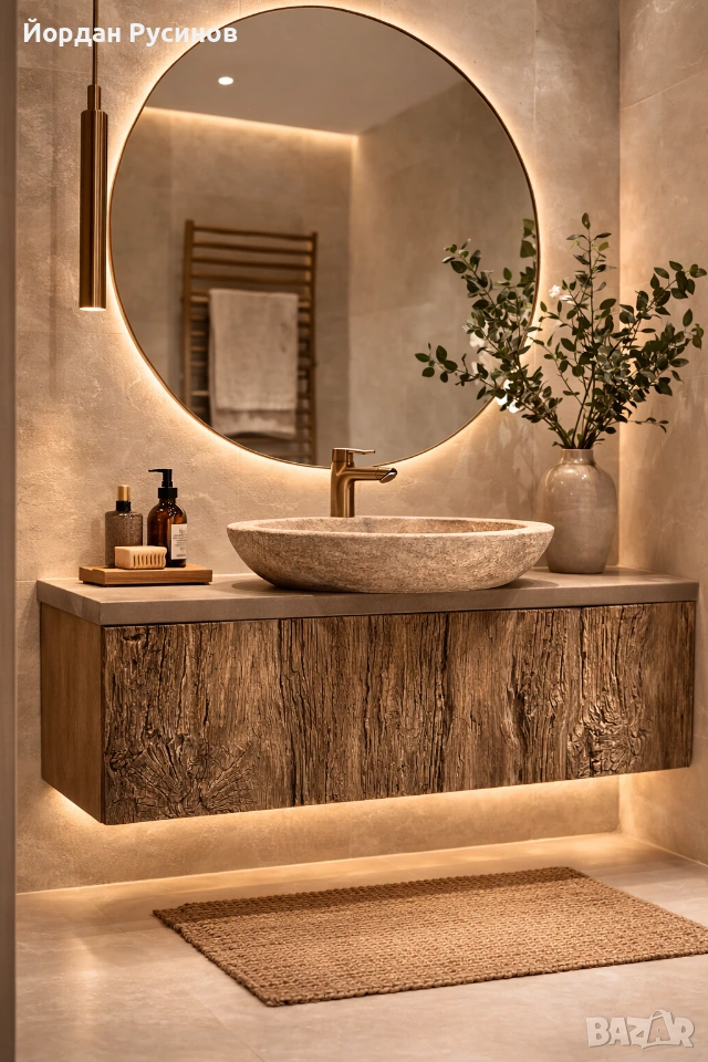 Дизайнерски шкаф за баня с ефект на старо дърво + огледало → Обява 53802408