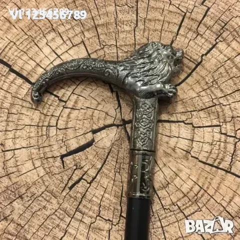Бастун с метална дръжка ЛЪВ и вграден кинжал 29 см