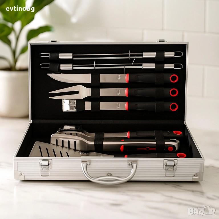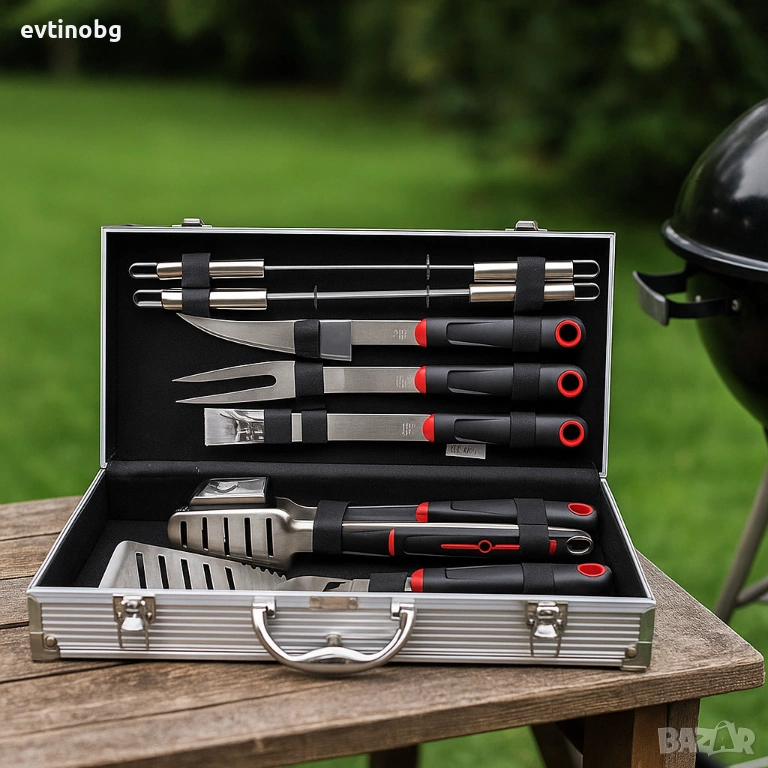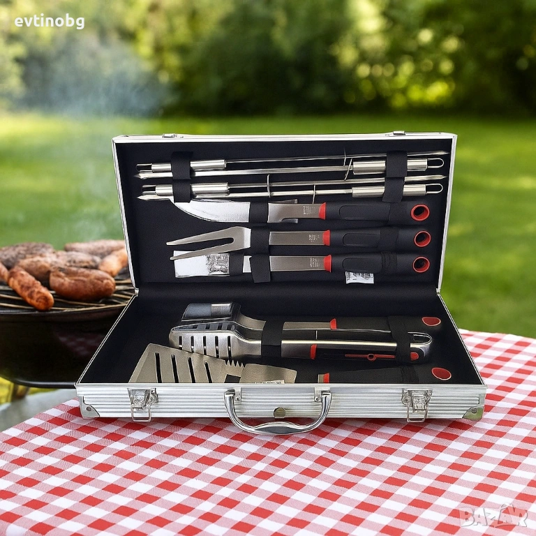 Луксозен комплект от 11 инструмента за барбекю в алуминиев куфар → Обява 53802654