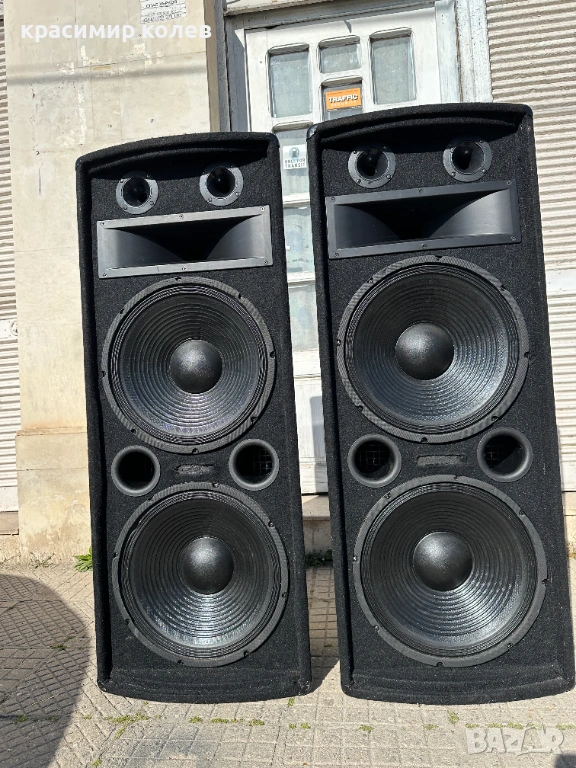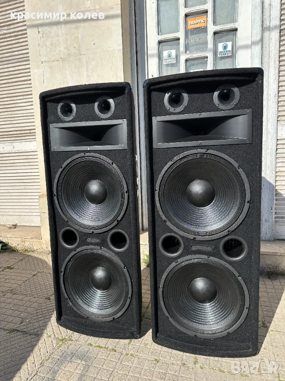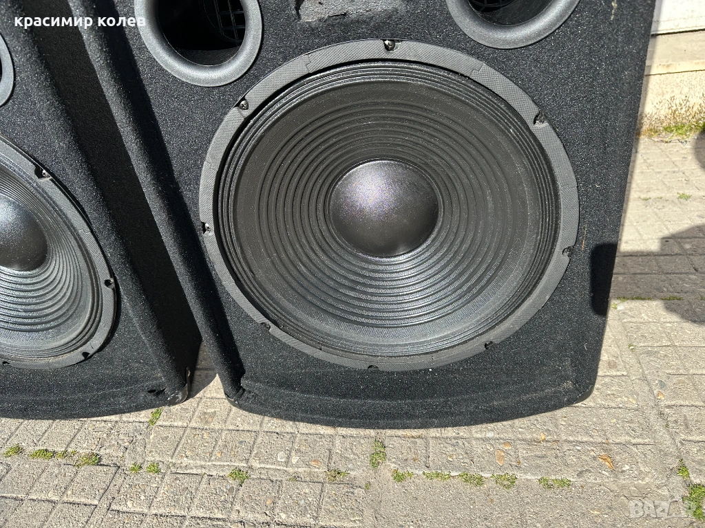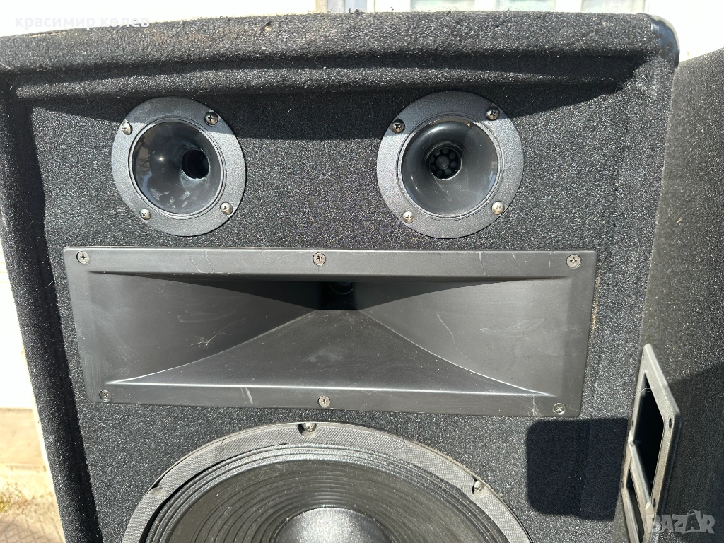 Характеристики: Всяка колона има два 15-инчови баса, два туитъра и един хорн. Номиналната мощност е 700 W RMS (1400 W пикова), а теглото на едната е цели 38 кг.