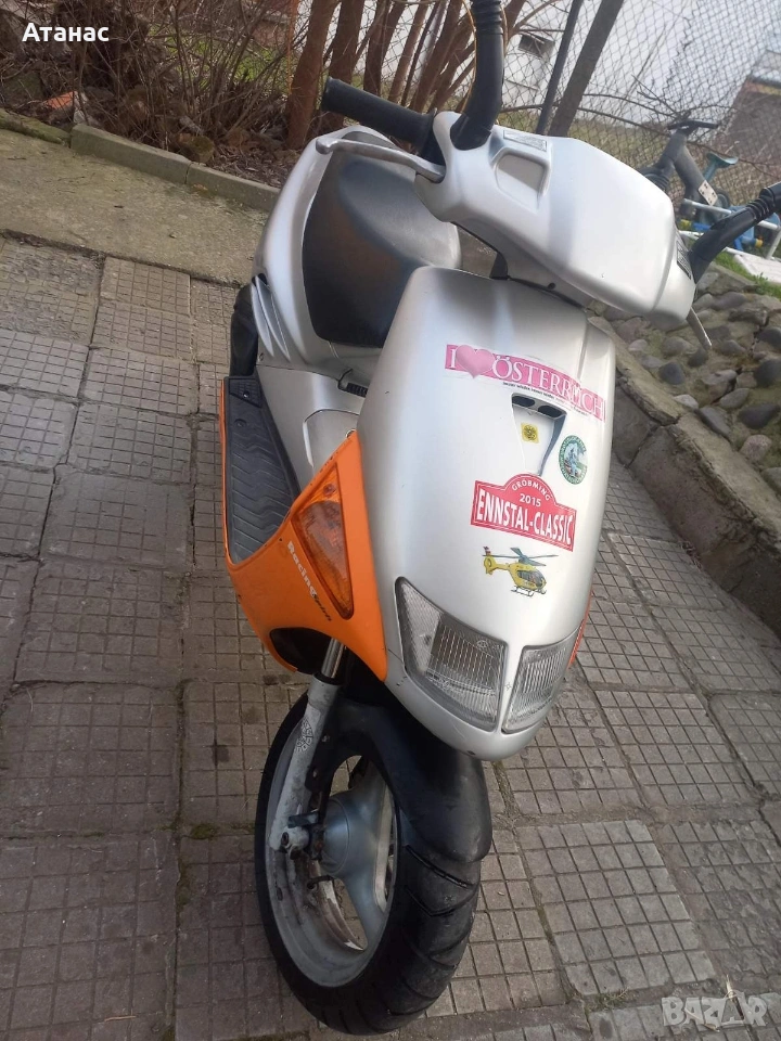 Добро състояние! Нови гуми. Чисто нов акумулатор. Минарели мотор с ръчен смукач. Пали и върви доста добре. Всички налични документи за регистрация в КАТ. Изключително здрав и надежден скутер. Имам и други 50-кубикови скутери. Възможен транспорт. По куриер изпращам след предварително капаро.