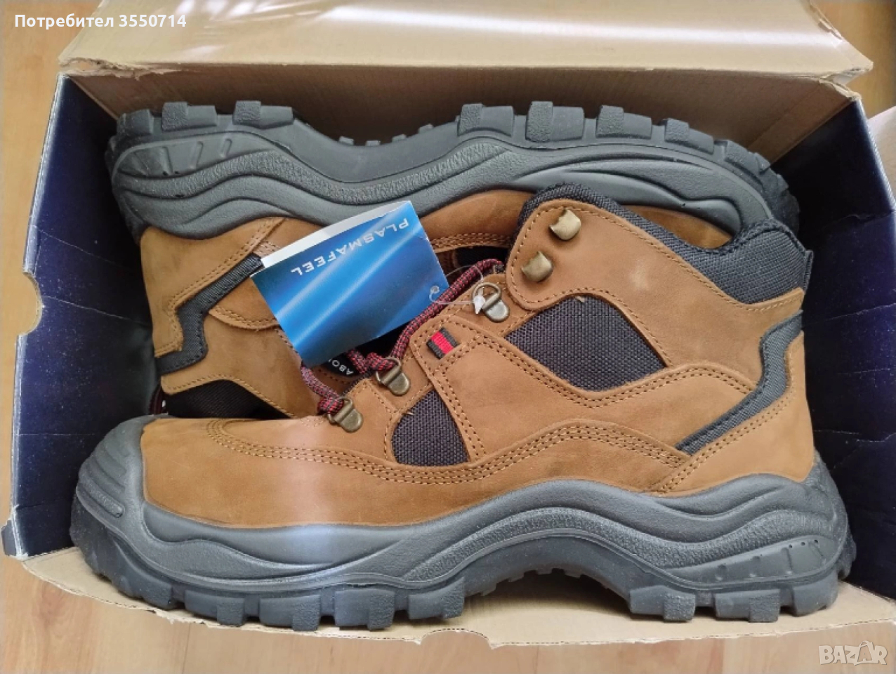 Чисто нови защитни обувки в кафяв цвят. Подходящи за работни условия,