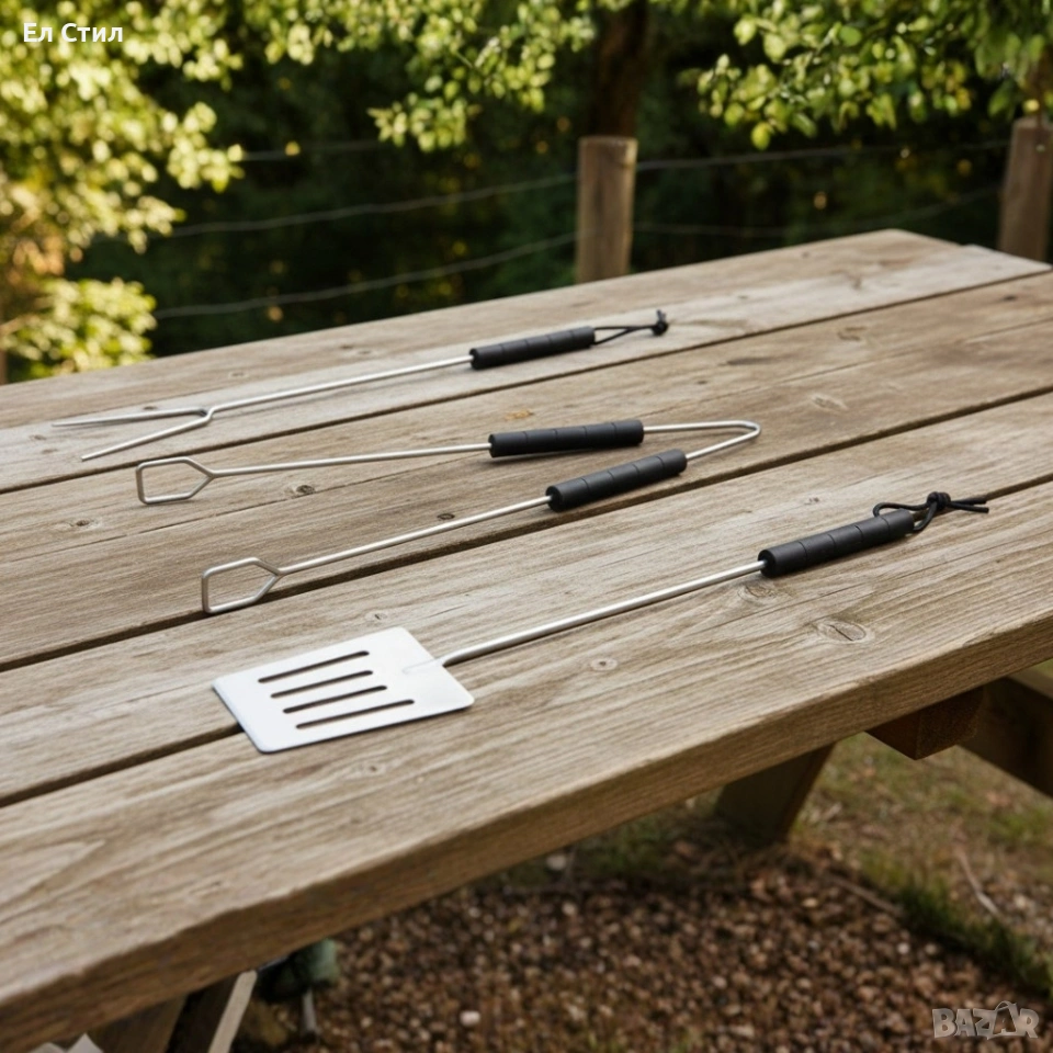 Комплект: Включва подарък 3 прибора за барбекю (шпатула, вилица и щипки)