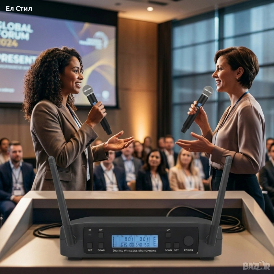Технически характеристики на Комплект 2 броя безжични микрофони и UHF приемник с дисплей