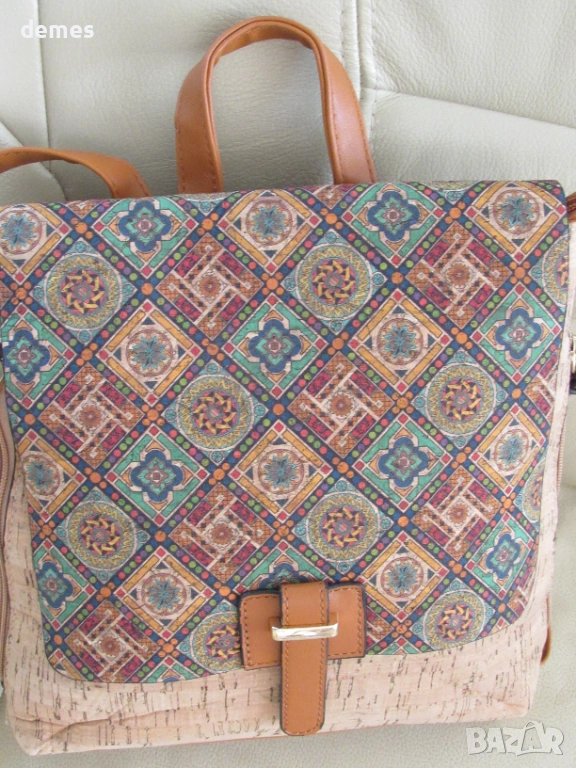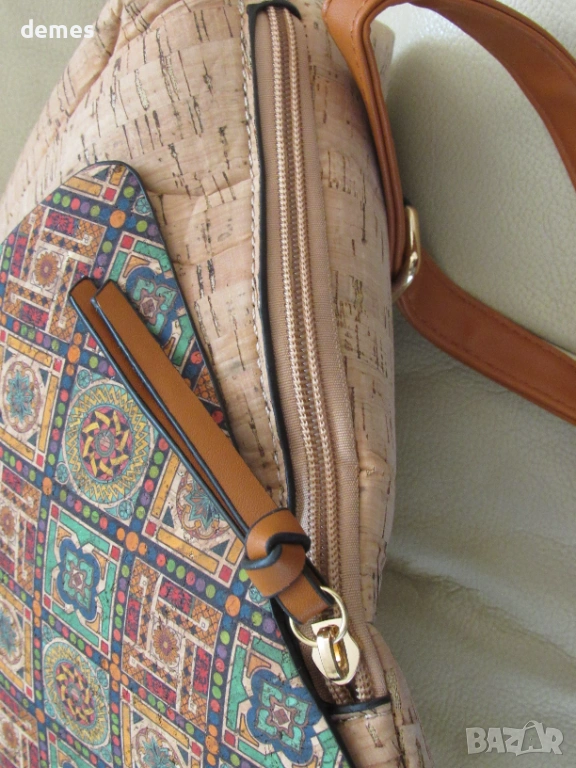 Чантата е изработена от естествен корк.