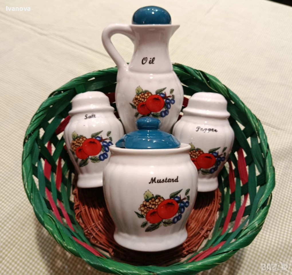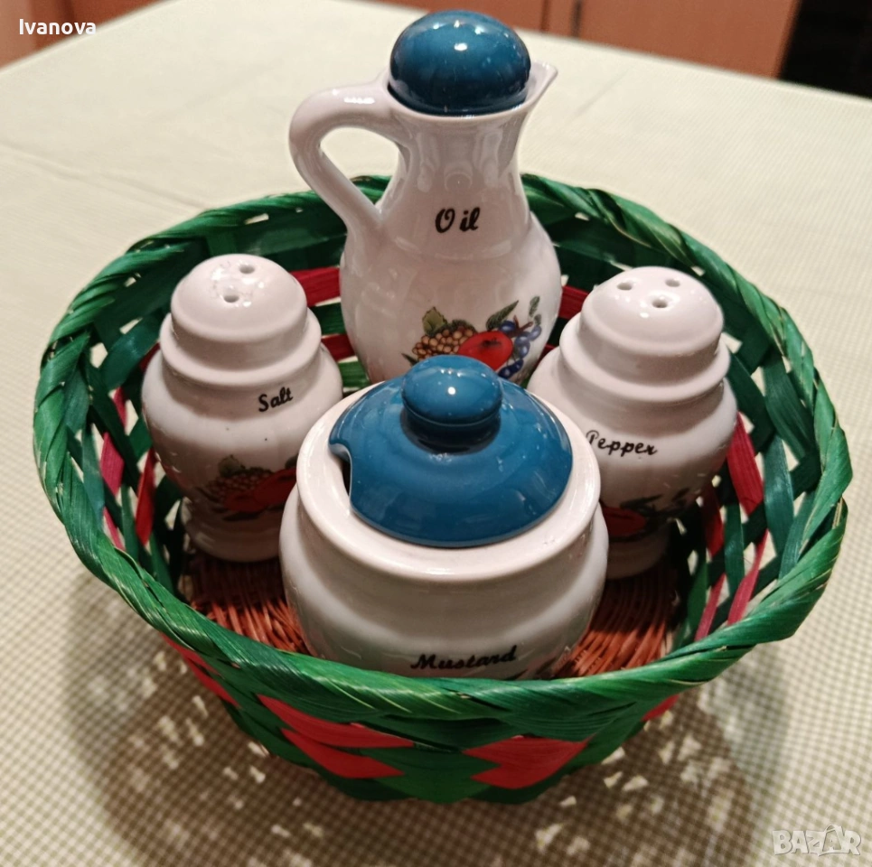 панер: за олио, сол с капаче от долу, пипер с капаче от долу и др.