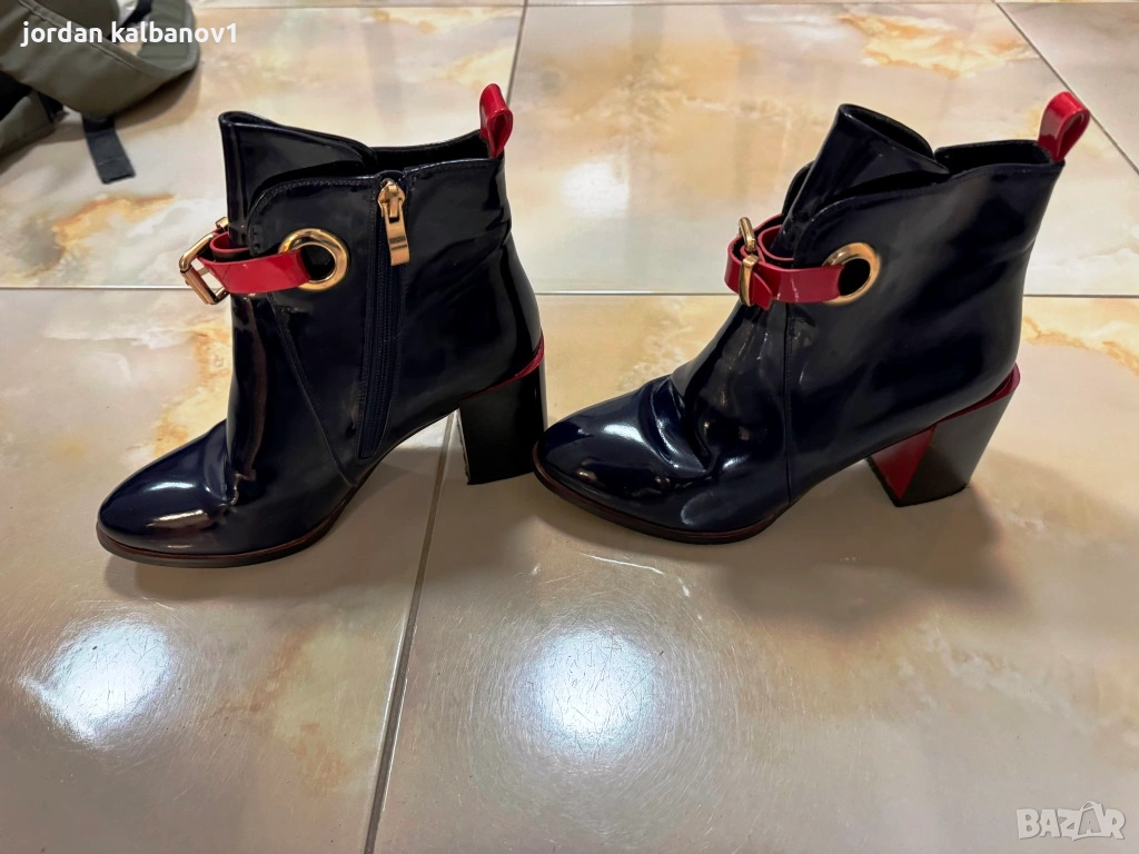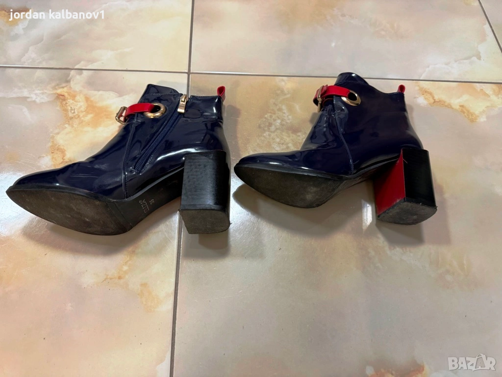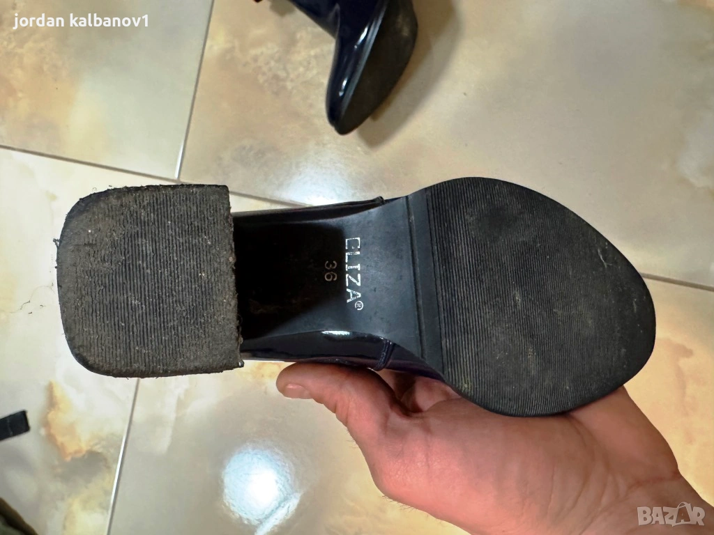 Подарявам - дамски тъмно сини лачени боти Елиза Eliza номер - 36 стелка - 23см. ток - 7см. → Обява 53806249