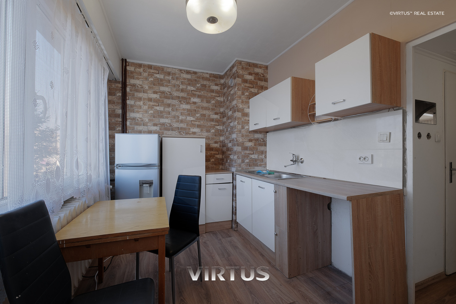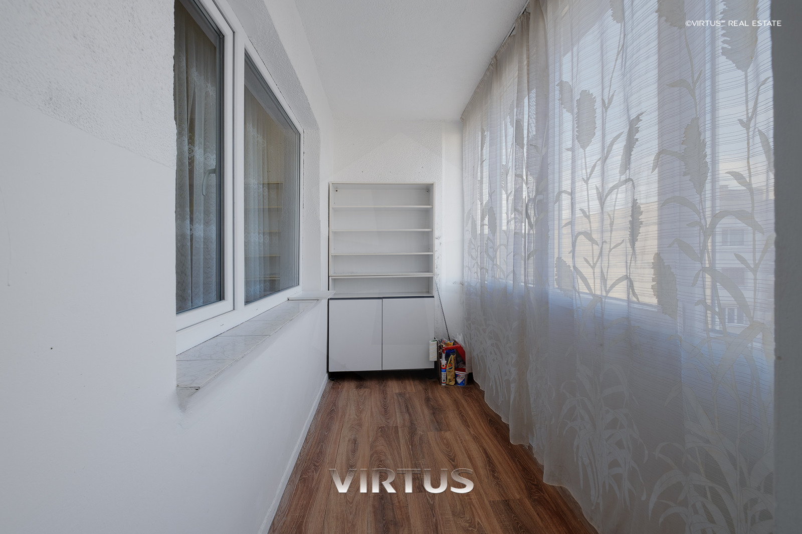 ВИРТУС предлага двустаен апартамент, състоящ се от: хол, спалня, кухня, баня с тоалетна, коридор и два балкона.